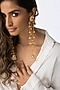 Featuring a pair of 22kt gold plated long layered earrings studded with pearl drops, set in brass. It has a push lock closure. Add a touch of sparkle to your ensemble, perfect for festive occasions, evening soirees or cocktail parties.