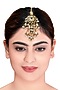 Featuring a 18 Kt gold plated maang tikka studded with imitation polki and pearls, set in brass.