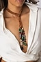 Featuring an oxidised silver finish lariat necklace studded with beads, set in brass. Add a touch of sparkle to your ensemble, perfect for festive occasions, evening soirees or cocktail parties.