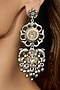 Featuring a pair of oxidised silver finish dangler earrings studded with floral motifs, set in brass. These earrings radiate timeless elegance, perfect for wedding celebrations, festive soirees, cultural gatherings or evening events, adding a regal charm to every look.