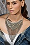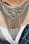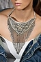 Featuring an oxidised silver finish choker necklace studded with metallic chain and green stones, set in brass. This necklace radiates timeless elegance, perfect for wedding celebrations, festive soirees, cultural gatherings or evening events, adding a regal charm to every look.