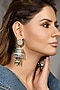 Featuring a pair of oxidised silver finish jhumka earrings, set in brass. These earrings radiate timeless elegance, perfect for wedding celebrations, festive soirees, cultural gatherings or evening events, adding a regal charm to every look.