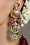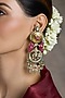 Featuring a pair of yellow gold finish chandbali earrings studded with intricate stones and beadwork, set in brass. These earrings radiate timeless elegance, perfect for wedding celebrations, festive soirees, cultural gatherings or evening events, adding a regal charm to every look.