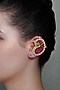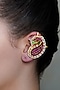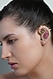 Featuring a pair of yellow gold finish earcuffs studded with carved pink gemstones and mango motifs, set in brass. These earrings radiate timeless elegance, perfect for wedding celebrations, festive soirees, cultural gatherings or evening events, adding a regal charm to every look.