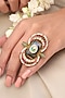 Featuring a yellow gold finish meenakari enameled ring studded with green gemstones, set in brass. This ring radiates timeless elegance, perfect for wedding celebrations, festive soirees, cultural gatherings or evening events, adding a regal charm to every look.