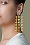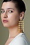 Featuring a pair of yellow gold finish chandelier earrings studded with green stones, set in brass. These earrings radiate timeless elegance, perfect for wedding celebrations, festive soirees, cultural gatherings or evening events, adding a regal charm to every look.