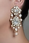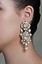 Featuring a pair of yellow gold finish dangler earrings studded with pearl drop, set in brass. These earrings radiate timeless elegance, perfect for wedding celebrations, festive soirees, cultural gatherings or evening events, adding a regal charm to every look.