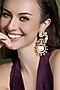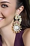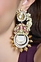 Featuring a pair of yellow gold finish peacock dangler earrings studded with ruby stones and bead drops, set in brass. These earrings radiate timeless elegance, perfect for wedding celebrations, festive soirees, cultural gatherings or evening events, adding a regal charm to every look.