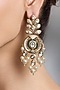 Featuring a pair of yellow gold finish earrings studded with uncut kundan polki and pearl drops, set in brass. These earrings radiate timeless elegance, perfect for wedding celebrations, festive soirees, cultural gatherings or evening events, adding a regal charm to every look.