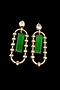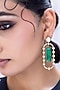 Featuring a pair of gold finish dangler earrings studded with diamond and emerald stones, set in alloy. Accessorise it with elegant ethnic or fusion ensembles for a statement look, ideal for festive soirees or wedding celebrations.