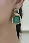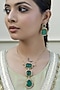 Featuring a gold finish chain pendant necklace studded with green kundan polki, set in alloy. It is paired with a matching pair of earrings. Accessorise it with elegant ethnic or fusion ensembles for a statement look, ideal for festive soirees or wedding celebrations.