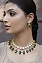 Featuring a gold finish choker necklace studded with green kundan polki, set in alloy. It is paired with a matching pair of earrings. Accessorise it with elegant ethnic or fusion ensembles for a statement look, ideal for festive soirees or wedding celebrations.