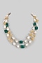 Gold Finish Green Quartz & Pearl Layered Necklace