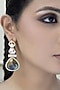 Featuring a pair of gold finish dangler earrings studded with kundan polki and aqua stones, set in alloy. Accessorise it with elegant ethnic or fusion ensembles for a statement look, ideal for festive soirees or wedding celebrations.