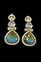 Gold Finish Kundan Polki & Aqua Stone Dangler Earrings