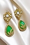 Featuring a pair of gold finish dangler earrings studded with kundan polki and emerald, set in alloy. Accessorise it with elegant ethnic or fusion ensembles for a statement look, ideal for festive soirees or wedding celebrations.
