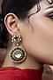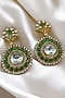 Featuring a pair of gold finish dangler earrings studded with kundan polki and green stones, set in alloy. Accessorise it with elegant ethnic or fusion ensembles for a statement look, ideal for festive soirees or wedding celebrations.