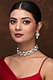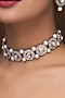 Featuring a gold finish choker necklace studded with kundan polki and pearls, set in mixed metal. It is paired with a matching pair of earrings. Ideal for festive occasions or wedding celebrations.