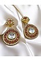 Featuring a pair of gold finish dangler earrings studded with kundan polki and ruby, set in alloy. Accessorise it with elegant ethnic or fusion ensembles for a statement look, ideal for festive soirees or wedding celebrations.