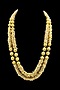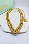 Featuring a gold finish long layered necklace studded with pearls, set in mixed metal. It is paired with a matching pair of earrings. Ideal for festive occasions or wedding celebrations.
