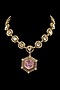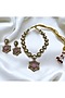 Featuring a gold finish necklace studded with pink kundan polki, set in alloy. It is paired with a matching pair of earrings. Accessorise it with elegant ethnic or fusion ensembles for a statement look, ideal for festive soirees or wedding celebrations.