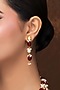 Featuring a gold finish long layered necklace studded with red quartz and shell pearls, set in mixed metal. It is paired with a matching pair of earrings. Ideal for festive occasions or wedding celebrations.