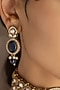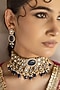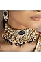 Featuring a gold finish choker necklace studded with royal blue kundan polki, set in alloy. It is paired with a matching pair of earrings. Accessorise it with elegant ethnic or fusion ensembles for a statement look, ideal for festive soirees or wedding celebrations.