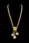 Gold Finish Yellow Stone & Kundan Polki Chain Pendant Necklace Set
