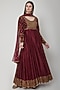 Featuring a maroon anarkali in chanderi silk base with zari, pita, and sequins embroidery. It is paired with matching pants and dupatta.