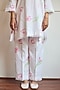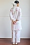 Featuring an ivory shirt in linen cotton base with tulip print. It is paired with ivory trousers. Accentuate it with earrings and heels for a casual wear.