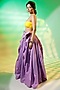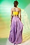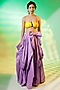 Featuring a light purple draped skirt in taffeta base. It is paired with a contrasting yellow jersey bustier.