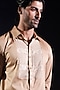 Featuring a beige paneled shirt in cotton lycra base with chikankari embroidery. Style it with pants, polished shoes and a sleek watch for a sharp, sophisticated look. Perfect for formal events and evening celebrations.