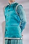 Featuring a green nehru jacket in cotton silk and satin base with pearl embroidery. It is paired with a kurta and pyjama pants. Perfect for festive occasions or pre-wedding ceremonies.