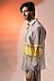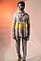 Featuring a grey and yellow color-blocked shirt in silk chanderi base with thread embroidery. This contains only one piece.
