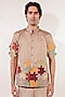 Hazelnut-Colored Cotton Lycra Hand Embroidered Shirt