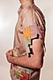 Featuring a hazelnut-colored shirt in cotton lycra base with quilting patchwork and kantha thread hand embroidery. Style it with pants and sneakers for a casual outing or vacation wear, exuding charm and elegance.