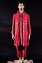 Featuring a red kurta in silk staple base with sequins and crystal hand embroidery. It is paired with pants and a stole. Style it with classic mojris for traditional look. Perfect for festive gatherings, family celebrations, and cultural events.