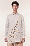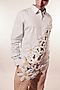 Featuring a white striped shirt in cotton base with 3D floral and patchwork. Style it with pants and sneakers for a casual outing or vacation wear, exuding charm and elegance.