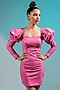 Featuring a pink mini dress in coated jersey base with puffed sleeves.