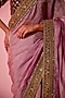 Featuring a lilac saree in crushed tissue base with sequins, zardosi and zari embroidery. It is paired with an embroidered blouse and an underskirt. Accentuate it with zircon jewellery and heels for a festive occasion, wedding or engagement ceremony.