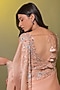 Featuring a peach saree in silk organza base with sequins and zardosi embroidery. It is paired with a full sleeves embroidered blouse and an underskirt. Accentuate it with zircon jewellery and heels for a festive occasion, sangeet or engagement ceremony.