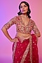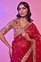 Featuring a rani pink saree in silk organza base with sequins and cutdana embroidery. It is paired with an elbow sleeves embroidered blouse and an underskirt. Accentuate it with zircon jewellery and heels for a festive occasion, sangeet or engagement ceremony.