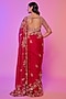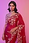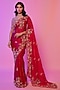 Featuring a rani pink saree in silk organza base with sequins and cutdana embroidery. It is paired with an elbow sleeves embroidered blouse and an underskirt. Accentuate it with zircon jewellery and heels for a festive occasion, sangeet or engagement ceremony.