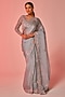 Soft Blue Silk Organza Sequins Embroidered Saree Set