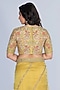 Featuring a yellow saree in silk organza base with sequins and cutdana embroidery. It is paired with an elbow sleeves embroidered blouse and an underskirt. Accentuate it with zircon jewellery and heels for a festive occasion, sangeet or engagement ceremony.