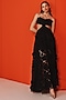 Featuring a black off-shoulder dress in cotton schiffli base with waist cut-out.