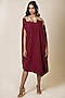 Featuring a maroon off-shoulder asymmetric dress in spandex and polyester base with split sleeves and zardosi hand embroidery. This contains only one piece.