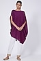 Purple Muslin Off Shoulder Cape Tunic Set