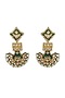 Featuring a pair of gold finish chandabali earrings studded with dark green meenakari, pearls, and jadtar stones, set in brass.