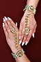 Featuring a pair of gold finish haath phools studded with mint green kundan polki, set in mixed metal. These haath phools radiates timeless elegance, perfect for wedding celebrations, festive soirees or cultural gatherings adding a regal charm to every look.